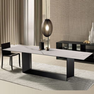 Sicily Collection – Italian minimalist modern large sintered stone with stainless steel black base