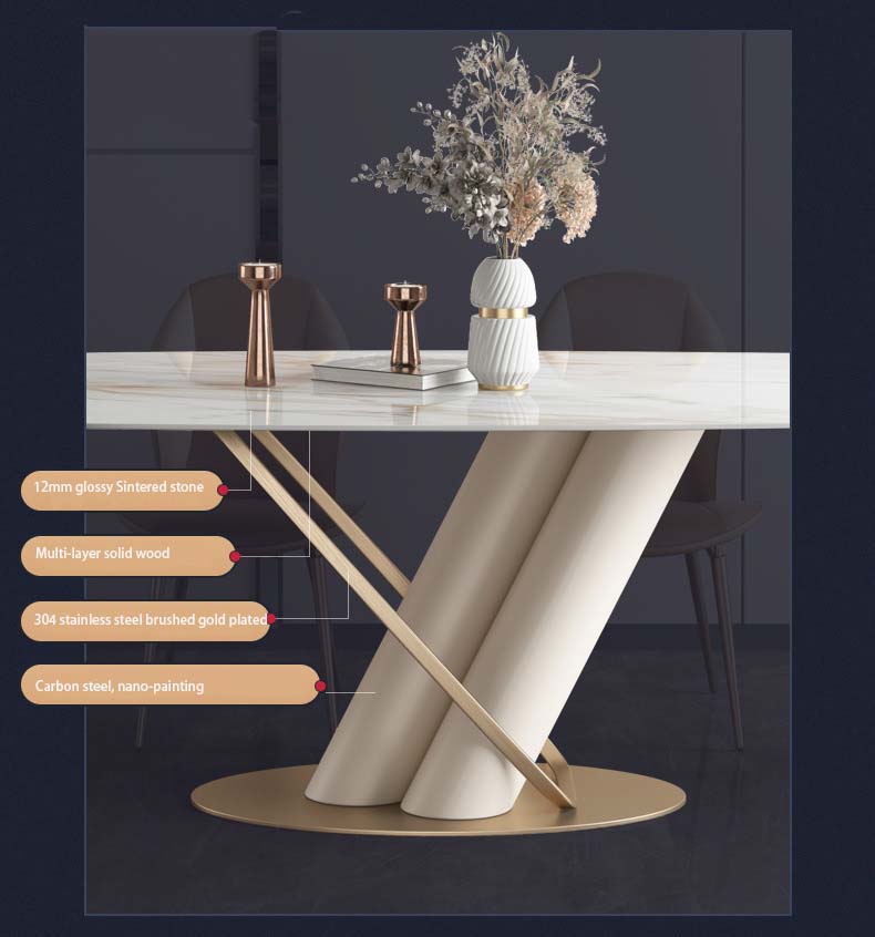 | Long Life Span | The sintered stone top plate with a Mohs hardness of 9 is wear-resistant, scratch-resistant, with a moisture proof base. This table can not be easily broken and can be used continuously for a long period time without breaking. | |||||