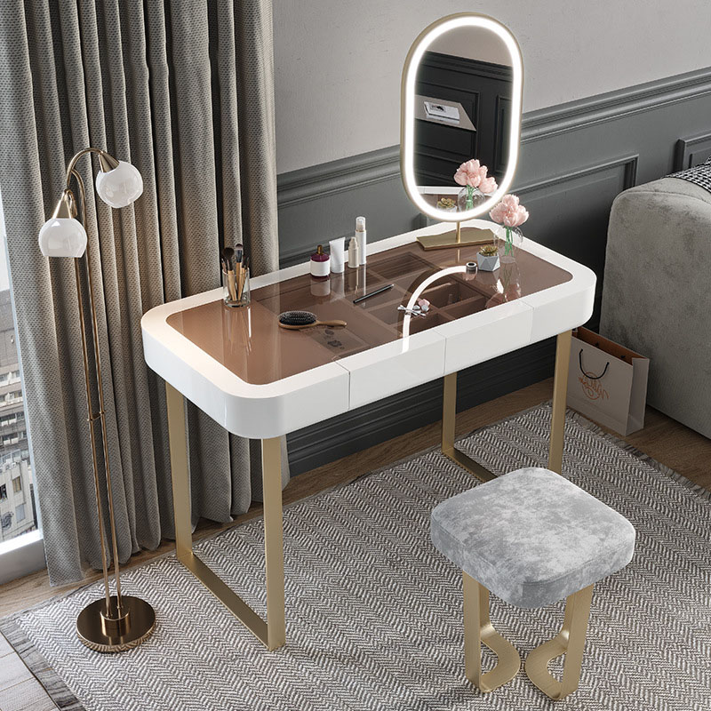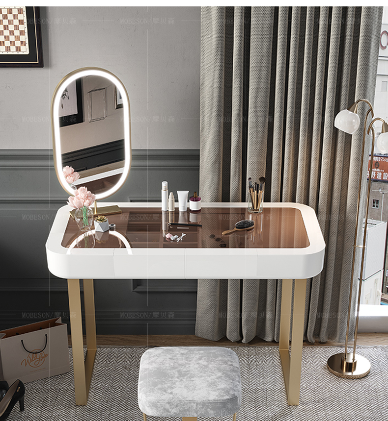Whether you’re a makeup enthusiast, a fashionista, or simply someone who appreciates exquisite design, our Modern Brown Glass Table Top White Makeup Vanity Set is the perfect addition to your space. Transform your bedroom, bathroom, or dressing area into a glamorous sanctuary with this elegant and functional vanity set. Order yours today and indulge in a luxurious beauty experience like no other.