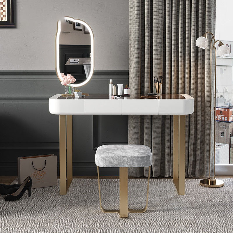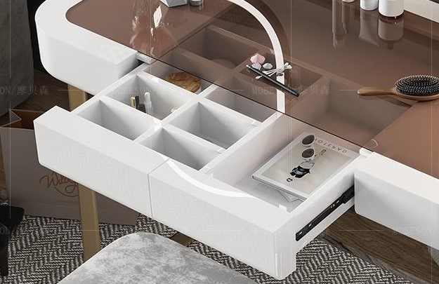 The 2-drawer table offers ample storage space for all your beauty essentials. Whether it’s cosmetics, brushes, or jewelry, you’ll find the perfect spot to keep everything organized and within reach. The drawers glide smoothly on their tracks, allowing for easy access and a seamless user experience.