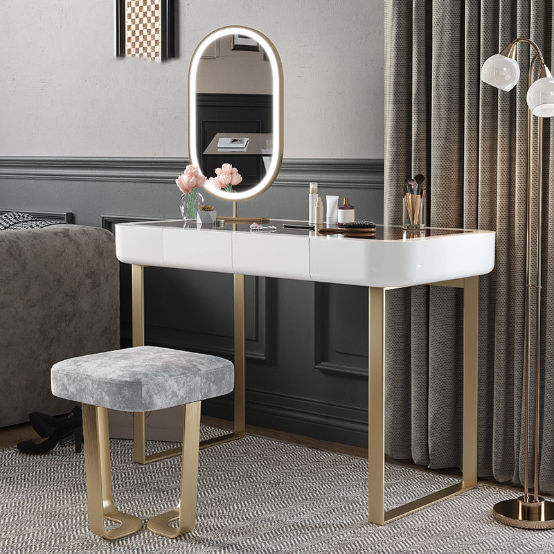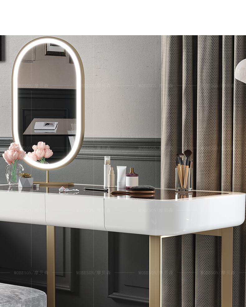 To complete the set, we’ve included a luxurious grey velvet stool that not only adds comfort but also complements the modern design. The soft and plush velvet upholstery offers a cozy seating experience, making your beauty routine even more enjoyable. The sturdy construction ensures long-lasting durability, while the grey color adds a contemporary flair.