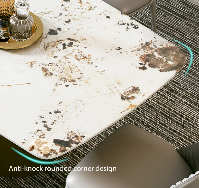 | Safety to Use | The stability of the safety load-bearing design prevents it from rolling over. The bottom of the dining table with micro-color rock board is bonded with solid wood multi-layer board, the frame is secured with screws, and the entire table is fixed with high-strength screws between the table top and the panel, so it will not move no matter how much it is shook. | |||||