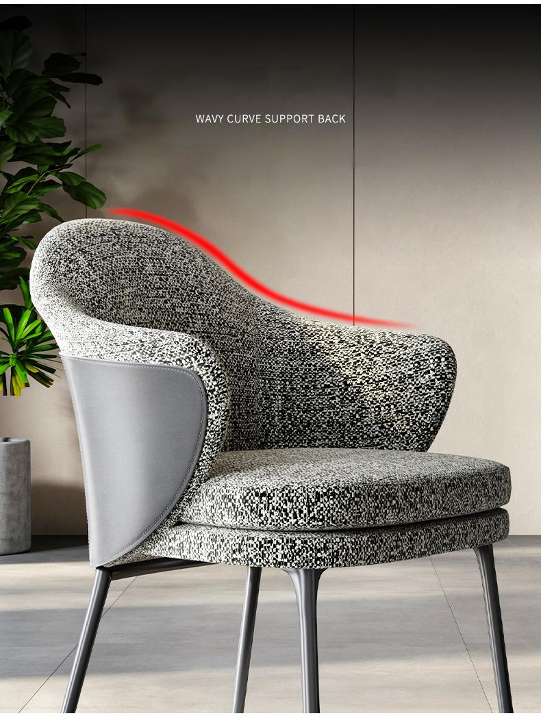 Made from a combination of cotton and linen with a leather backing, these chairs exude a luxurious and contemporary vibe. The cotton and linen upholstery adds a soft and inviting touch, while the leather backing provides an element of sophistication and durability. The combination of these materials ensures a chair that is both comfortable to sit on and built to last.