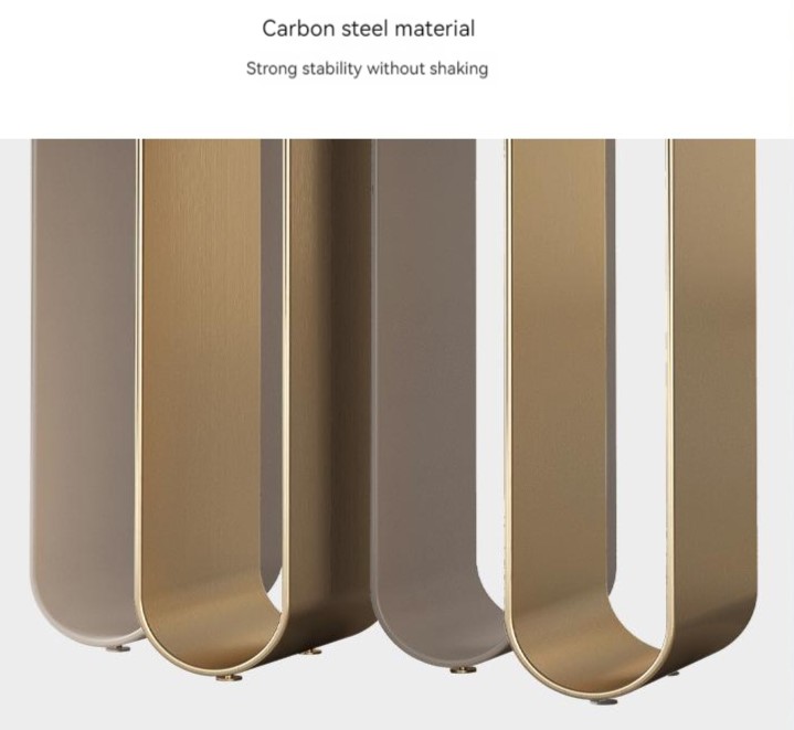 I recently purchased this, and it's absolutely stunning! The modern sintered stone top adds a sleek and contemporary touch to my living space. The 4 curved stainless steel base not only provides excellent stability but also adds a unique and artistic element. The craftsmanship is exceptional, and the attention to detail is remarkable. It's a true statement piece that enhances the overall aesthetic of my home. Highly recommended!