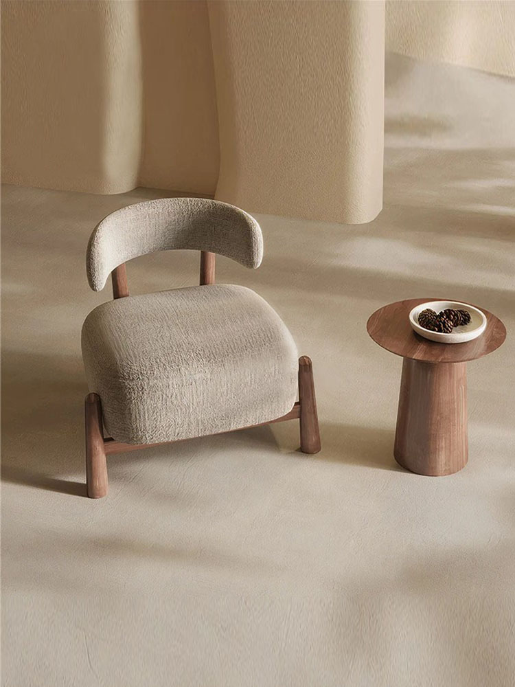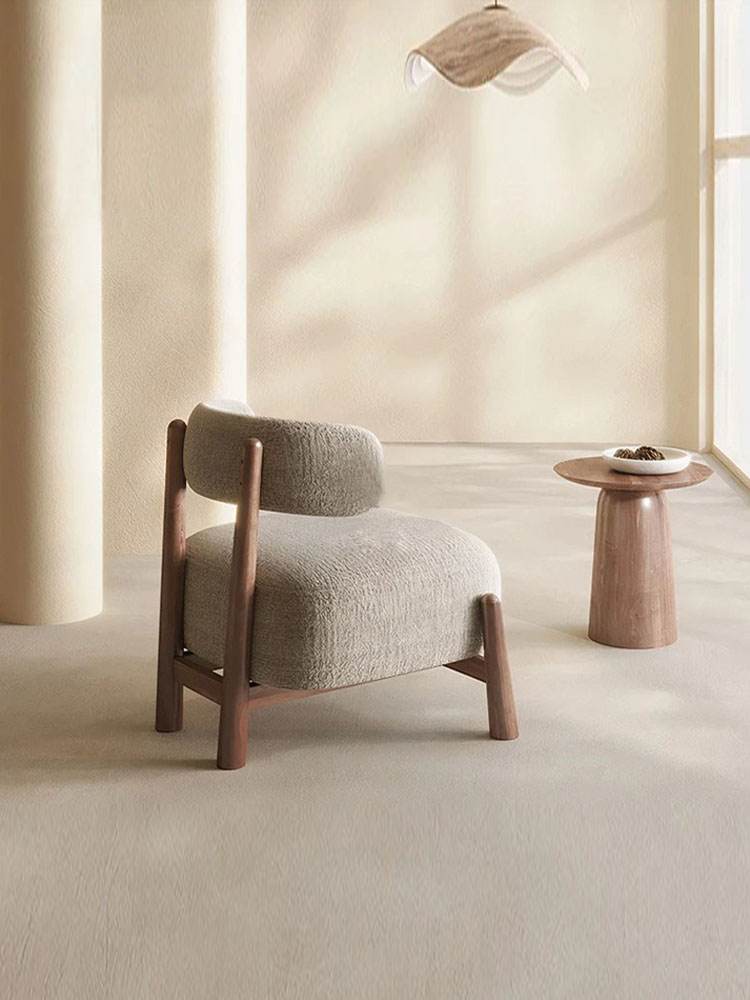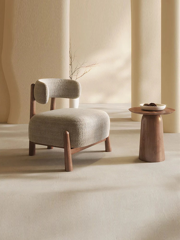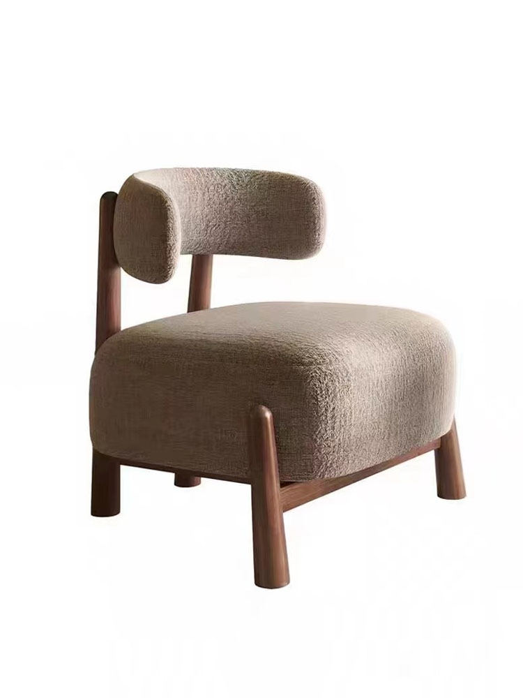 Sicily Collection – Minimalist Modern Teddy Lamb Velvet Chair With Solid Wood Base