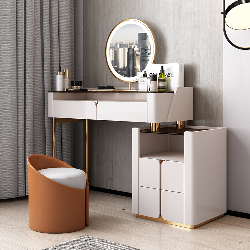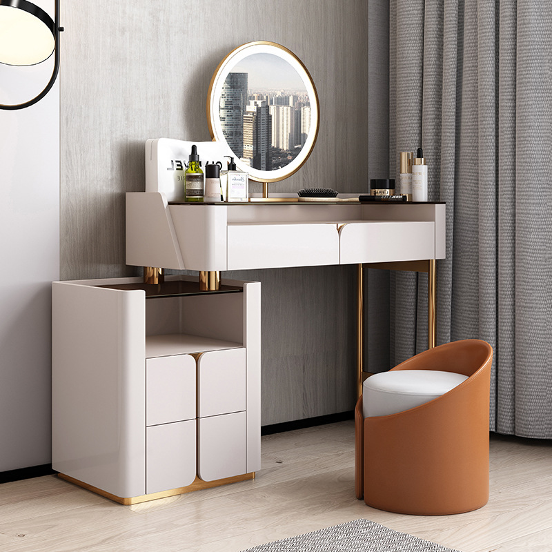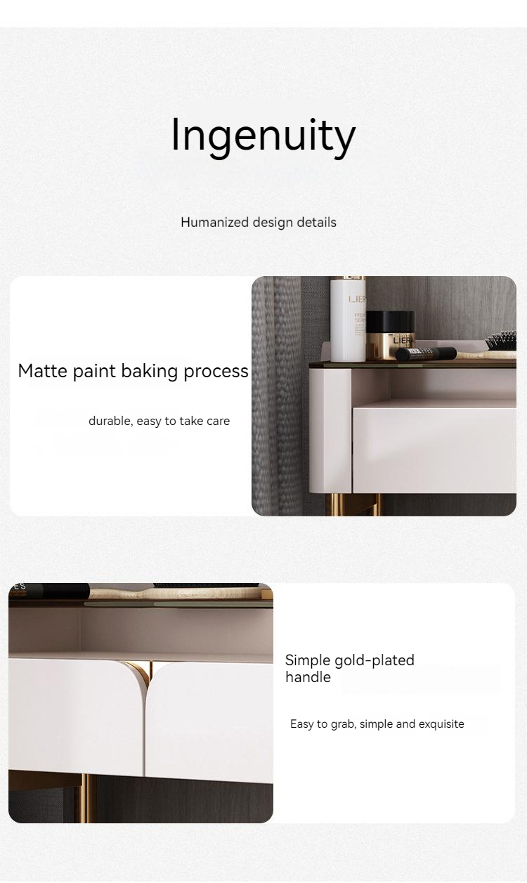 Complementing the vanity table is a practical 2-drawer side cabinet, providing additional storage for larger beauty items or personal belongings. This side cabinet perfectly matches the design of the vanity table, creating a cohesive and harmonious look for your vanity area.