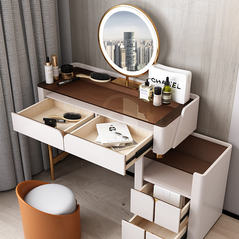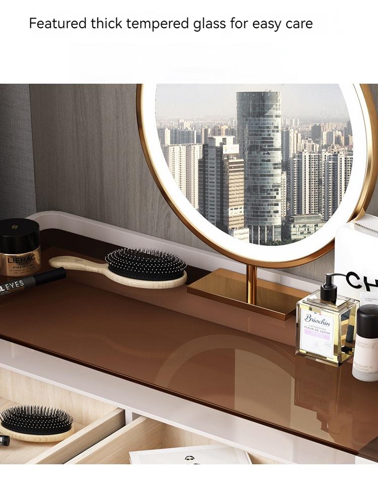 The makeup vanity set includes a convenient 2-drawer table, offering ample storage space for your beauty essentials, such as makeup brushes, cosmetics, and accessories. The drawers glide smoothly, allowing easy access to your belongings while keeping them organized and within reach.
