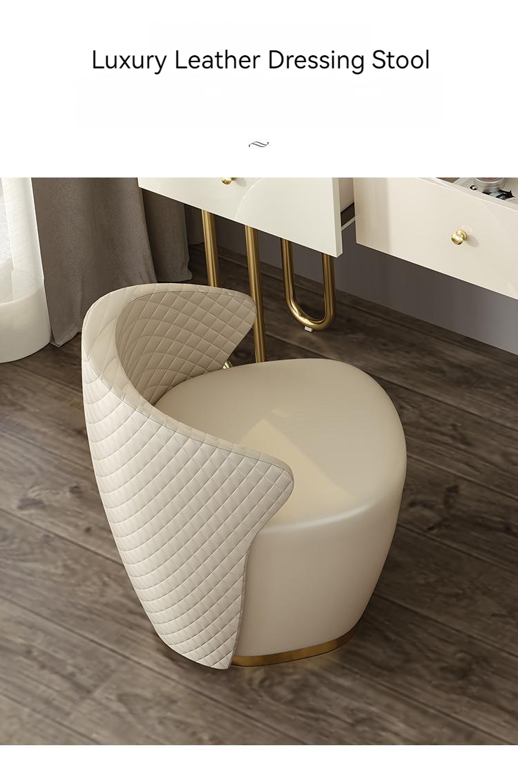 No vanity set is complete without a comfortable seating option, and that’s where our Luxury Leather Stool comes in. Upholstered in high-quality leather, this stool provides both comfort and style. The stainless steel legs not only offer stability but also add a contemporary touch, perfectly harmonizing with the rest of the collection.