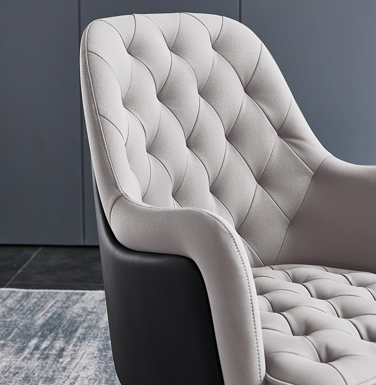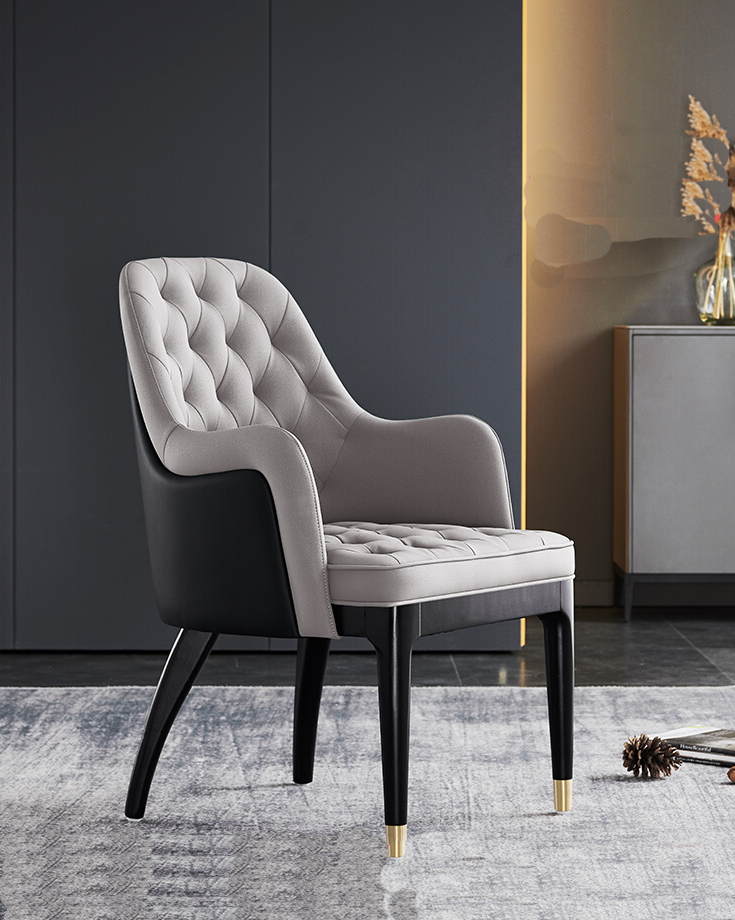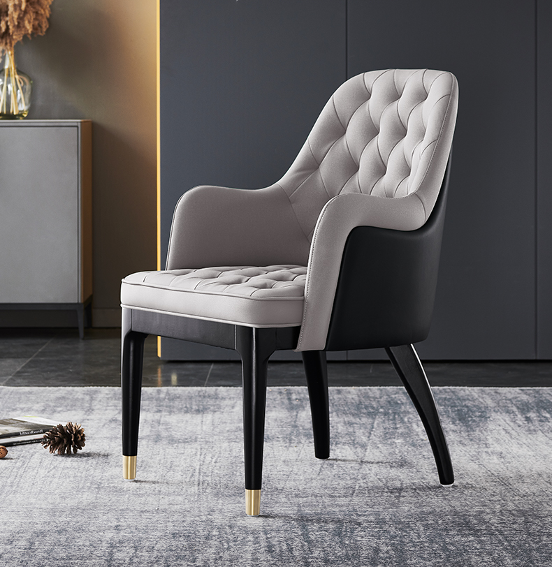 The chair features a stunning combination of soft white and black backing, creating a striking visual contrast that adds a touch of elegance to your dining space. The premium leather upholstery exudes luxury and offers a smooth, supple feel, ensuring maximum comfort during long meals or gatherings.