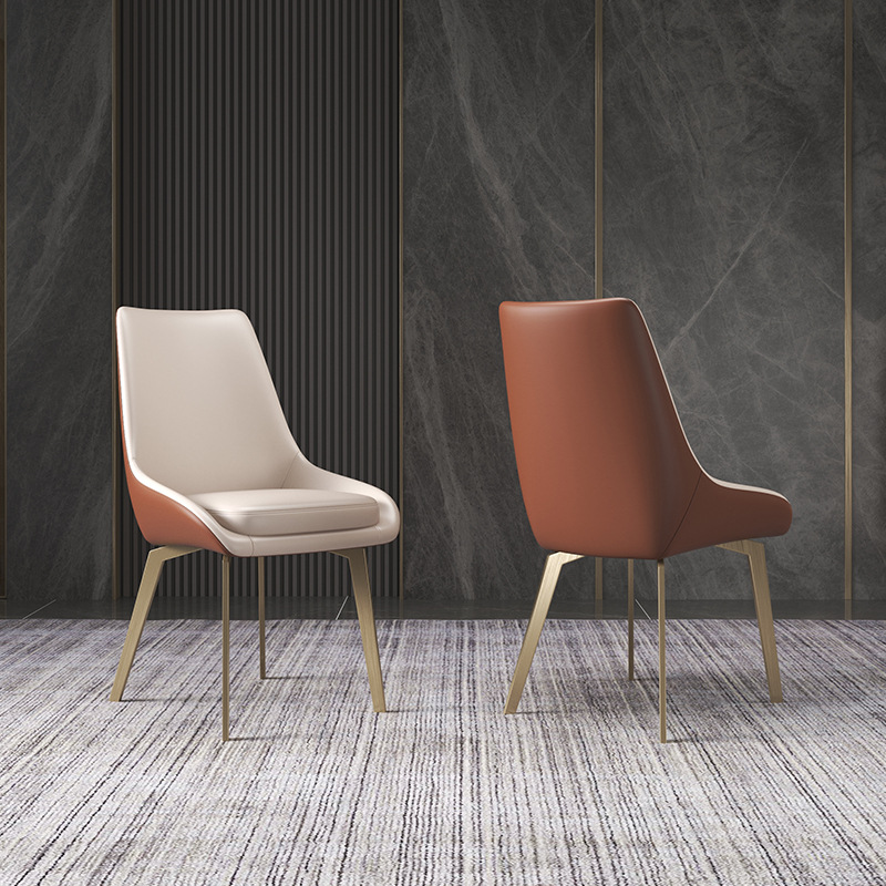 Sicily Collection – Modern Soft White and Brown Dining Chair, Leather and Stainless Steel Legs, Set of 2