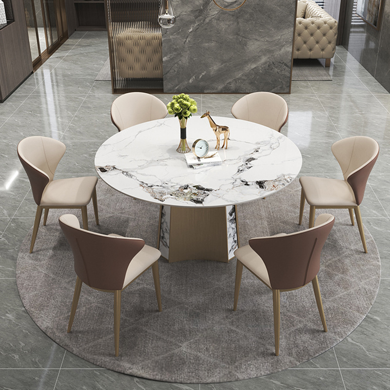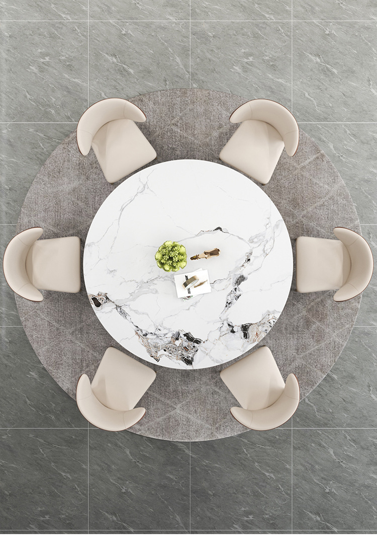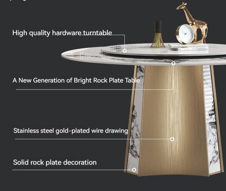 Safety to Use The stability of the safety load-bearing design prevents it from rolling over. The bottom of the dining table with micro-color rock board is bonded with solid wood multi-layer board, the frame is secured with screws, and the entire table is fixed with high-strength screws between the table top and the panel, so it will not move no matter how much it is shook.