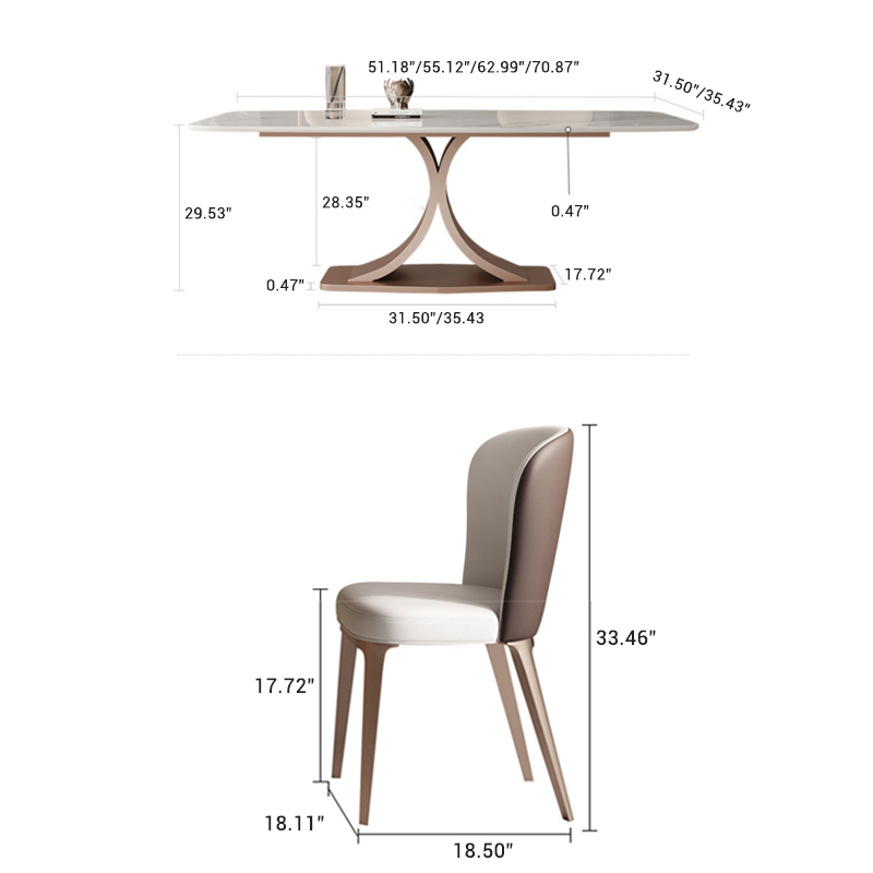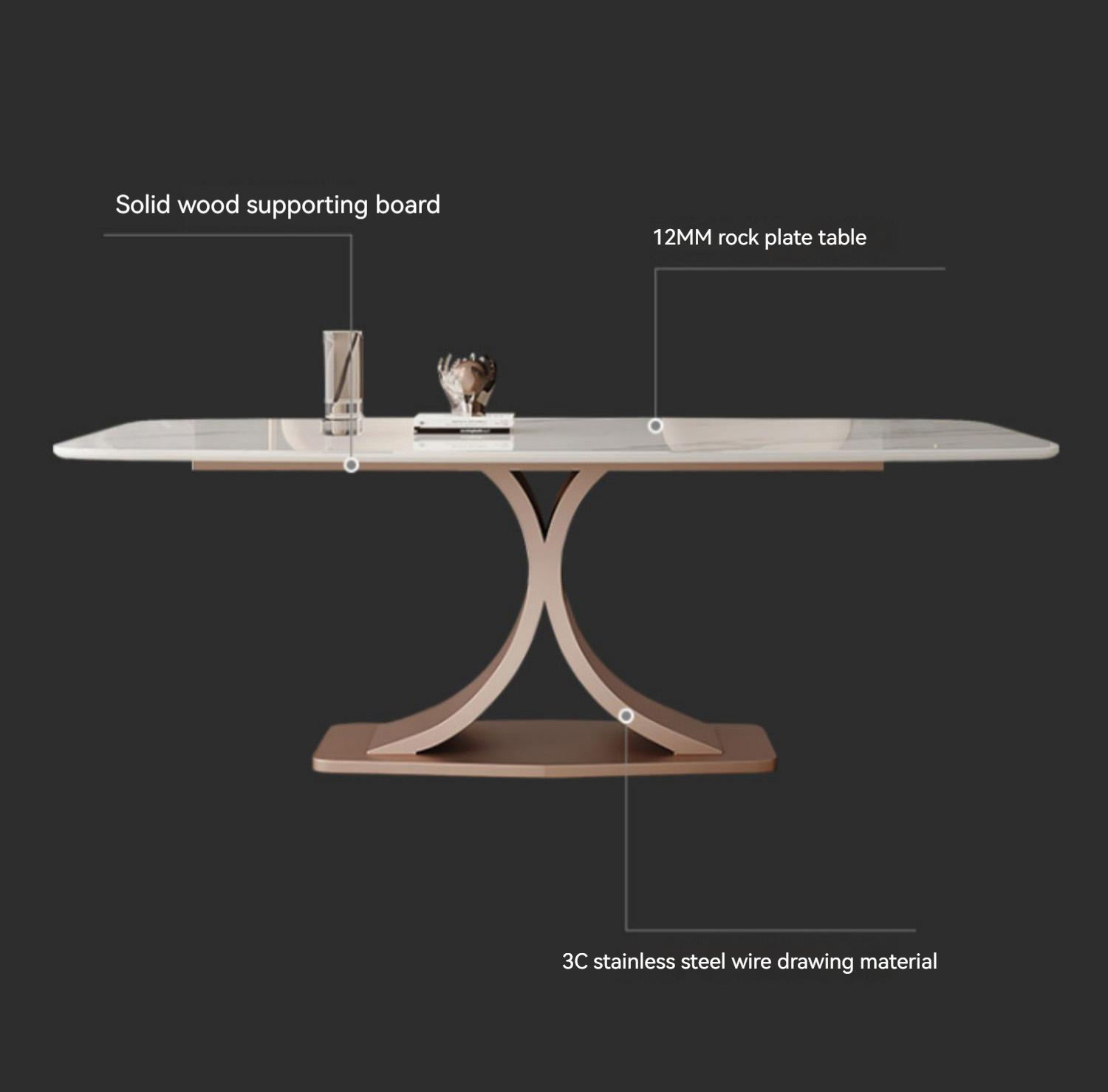 Presenting the epitome of contemporary luxury, the Titanium Gold Wire Drawing Base with Sintered Stone Dining Table. This exquisite piece of furniture seamlessly combines cutting-edge design, premium materials, and masterful craftsmanship to create a dining experience like no other.