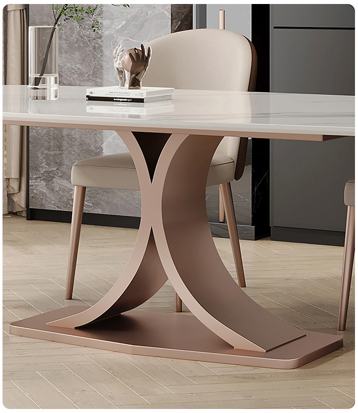 In conclusion, the Titanium Gold Wire Drawing Base with Sintered Stone Dining Table is a masterpiece of modern design and sophistication. Its titanium gold finish, wire drawing base, and sintered stone tabletop come together to create a visually stunning and luxurious centerpiece for your dining area. This table embodies both style and functionality, allowing you to indulge in unforgettable dining experiences while enjoying the finest in contemporary design.